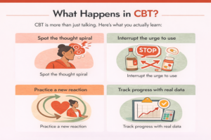 Think of CBT like a workout for your brain: it trains you to respond differently, not just reflect. That’s why it’s a gold-standard approach for addiction, anxiety, depression, and trauma recovery.